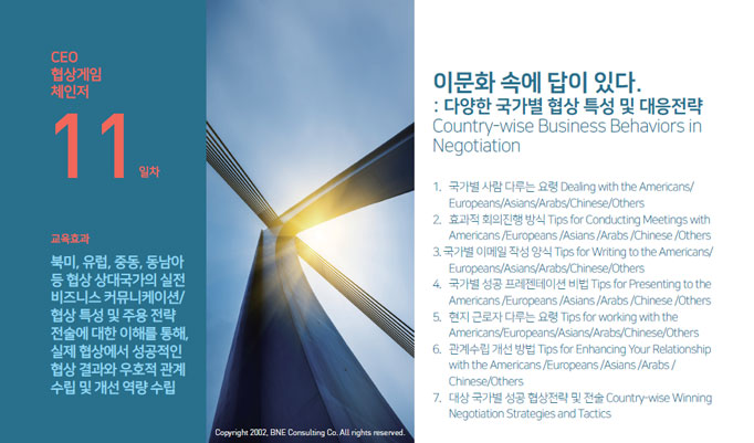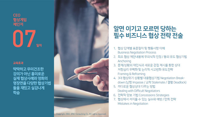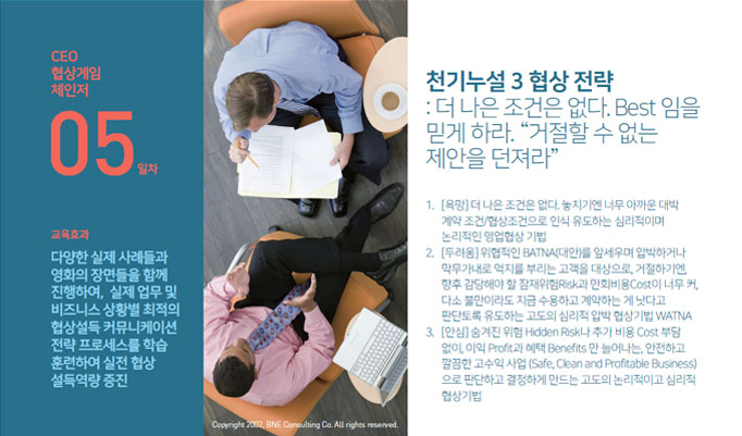 | 1 | 비즈니스 협상 게임 체인저 (Negotiation Game Changer) |